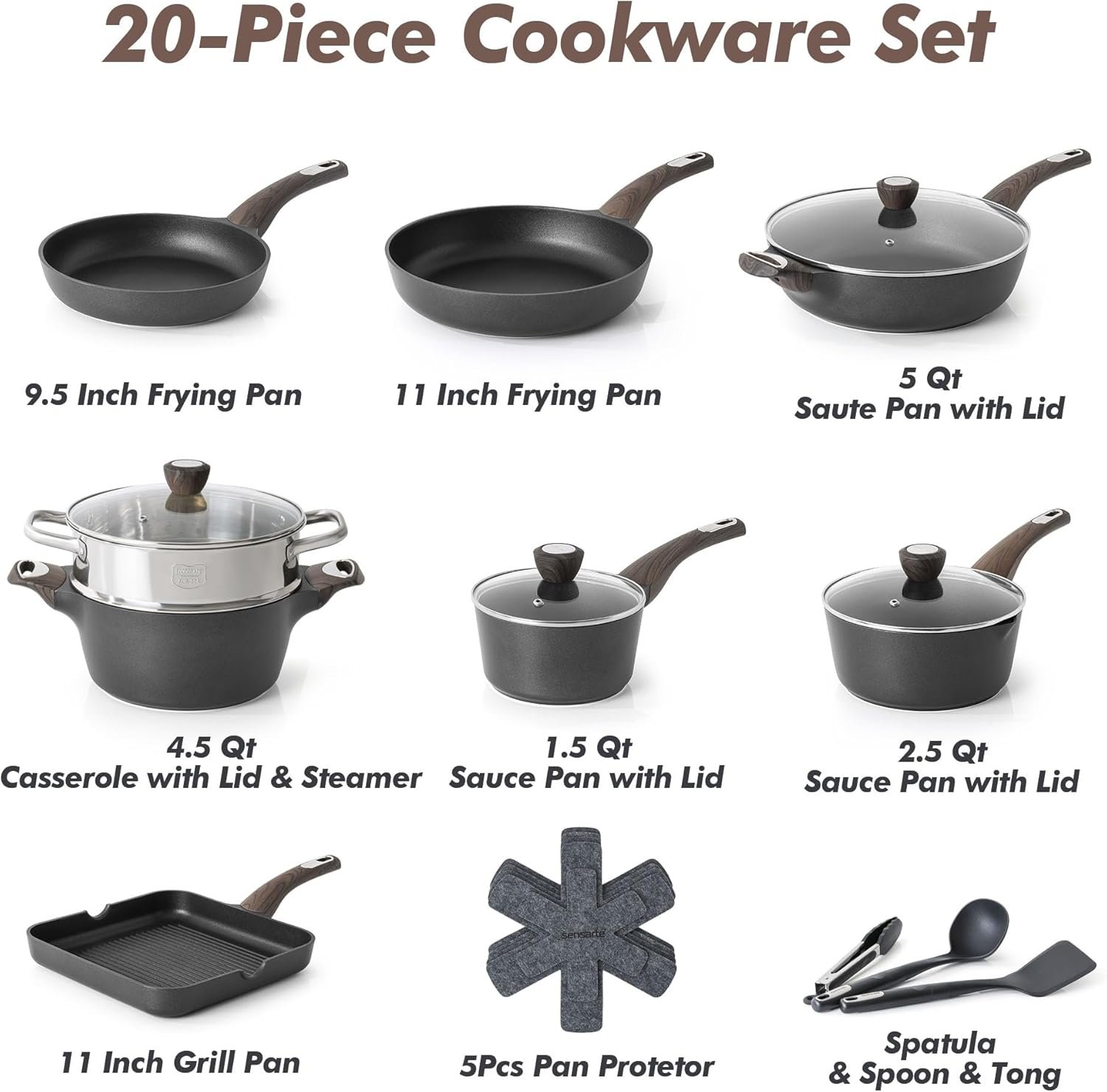 While specific models vary, a typical SENSARTE Nonstick Cookware Set includes: